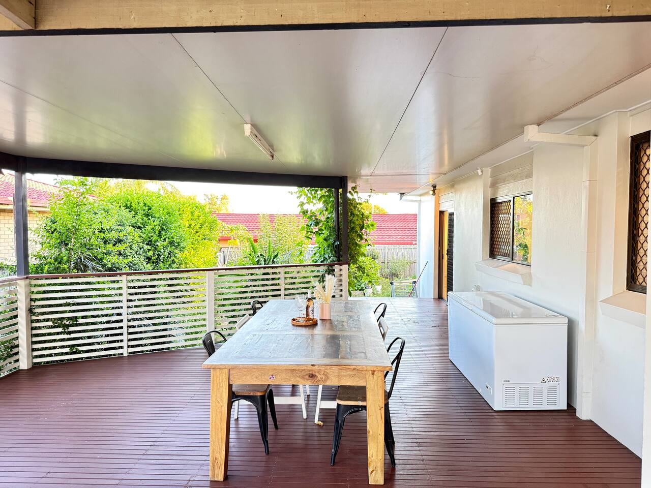 Welcome to your spacious retreat in Sunnybank Hills — where comfort meets creativity! This beautifully designed home offers a rare combination of space, style, and function. The large living area features a full-length mirror and yoga mats, perfect for dance, fitness, or mindful stretching. Sink into the plush electric recliner sofa and unwind in front of the big-screen TV, or transform the space into your personal studio with a desk, ergonomic chair, and phone stand — ideal for remote work or live streaming. The fully equipped kitchen is a dream for food lovers, complete with a large solid-wood dining table for sharing meals or hosting friends. With two cozy bedrooms plus a sofa bed in the living room, this home comfortably accommodates up to five guests. Located just a 12-minute walk from Calamvale Central, you’ll have shops, cafés, and restaurants right at your doorstep — yet still enjoy peace and privacy in a quiet neighborhood. Whether you’re here for work, family, or creativity, this home has everything you need to live, move, and be inspired. 🌿✨