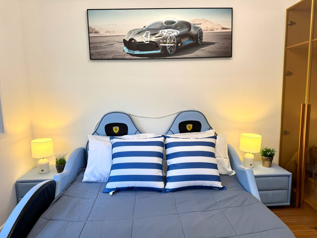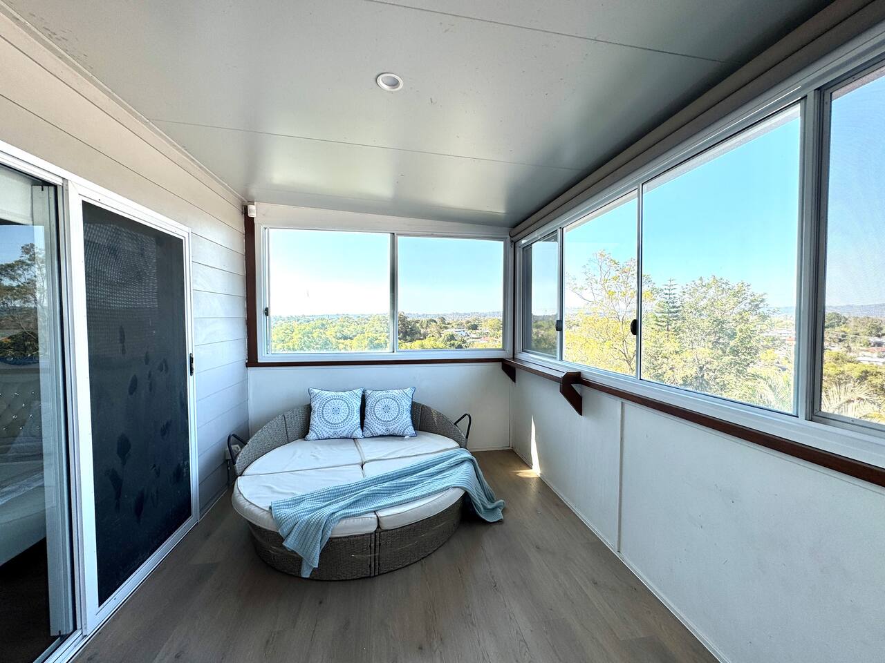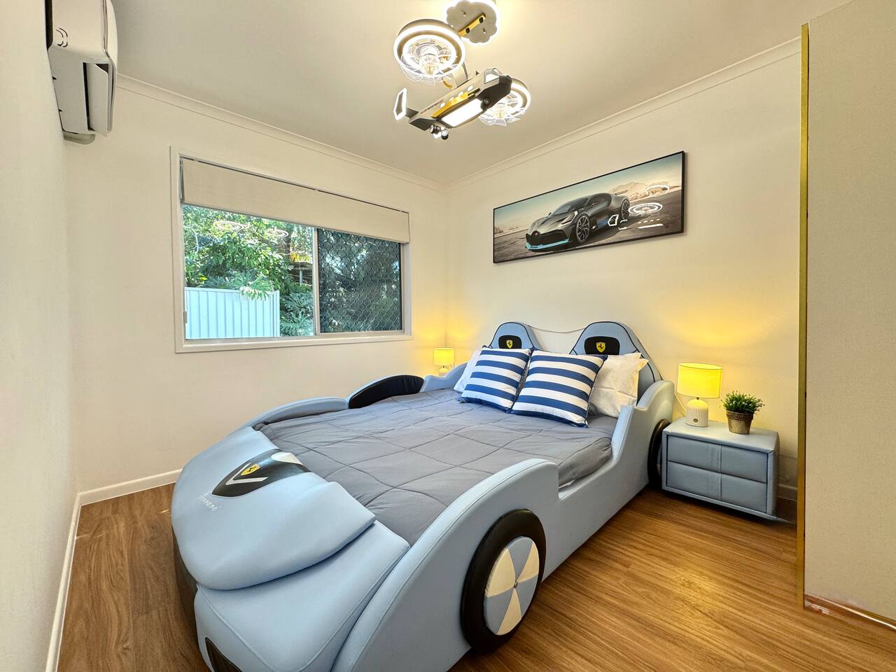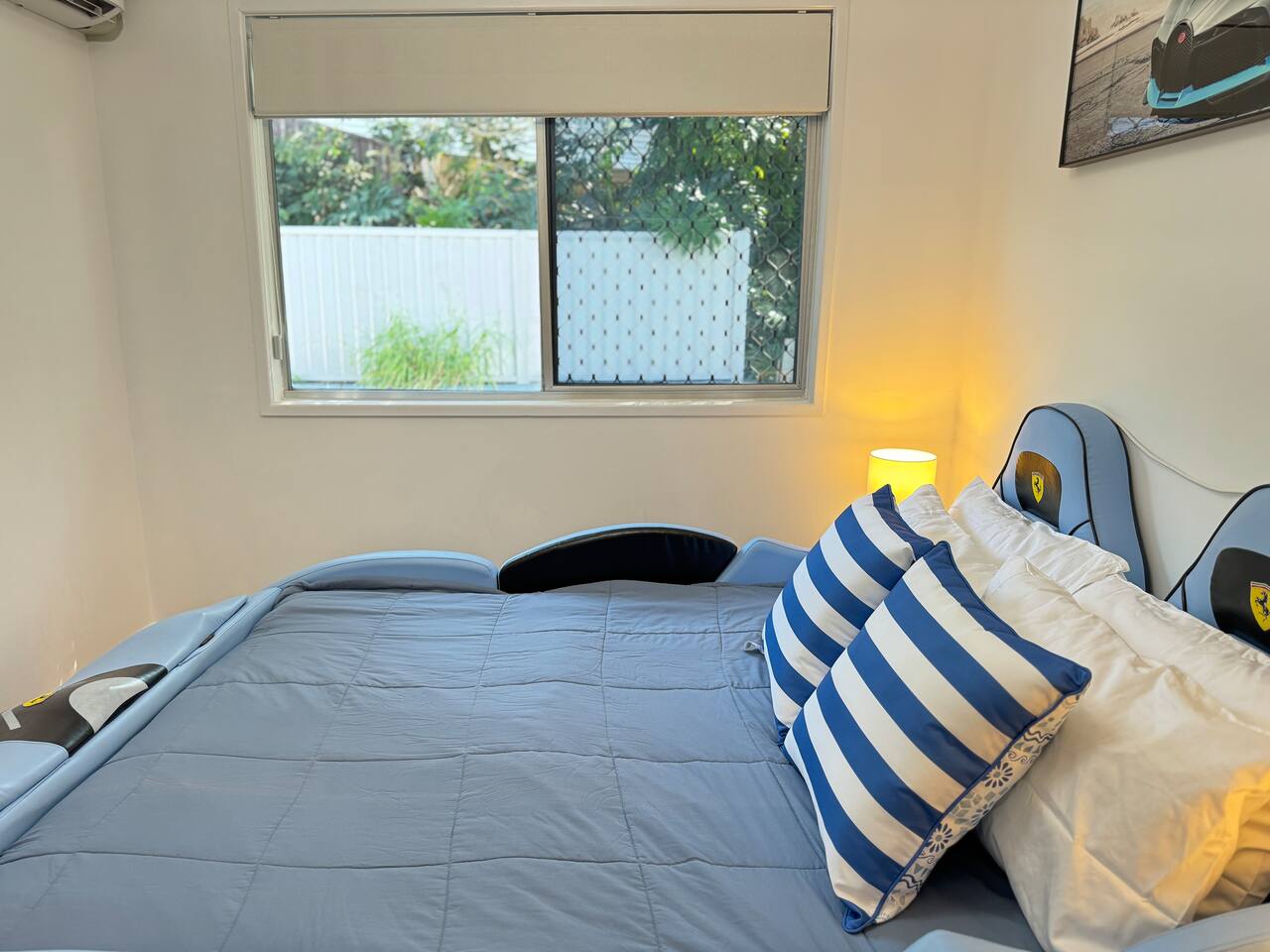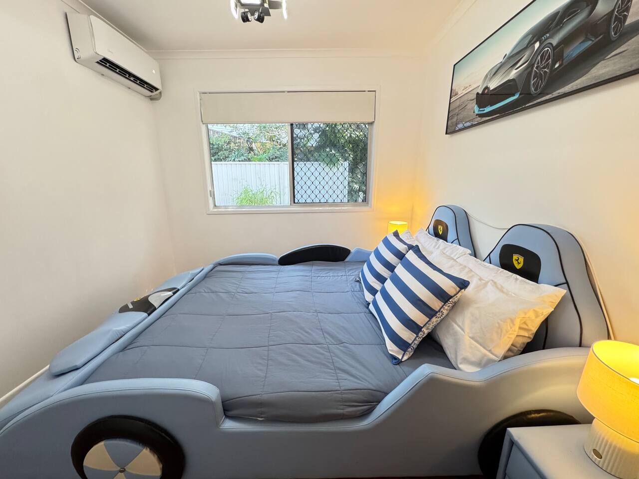 This retreat in Slacks Creek is just minutes from IKEA, Logan Hyperdome, Loganholme, and Logan Hospital. This spacious 3-bedroom, 1-bathroom home occupies the entire second floor and offers breathtaking mountain views from a large private glass deck — perfect for enjoying your morning coffee or relaxing with an evening wine under the stars. The bright living area invites you to unwind after a busy day, while the fully equipped kitchen provides everything you need for home-style cooking. Families will love the unique blue children’s room, complete with a fun vehicle-shaped bed and car-themed ceiling light — a playful touch that delights young guests.